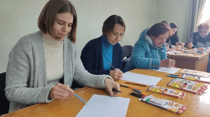 На занятии по арт-терапии участники вместе с детьми рисовали картины по номерам. Во время мероприятия психологиня центра Ольга Гирченко рассказывала о способах восстановления ресурса, звучала приятная успокаивающая музыка. Творческий процесс так увлек участниц, что некоторые не могли оторваться от рисования даже после окончания мероприятия. Как рассказывает одна из участниц, рисование действительно успокаивает.
