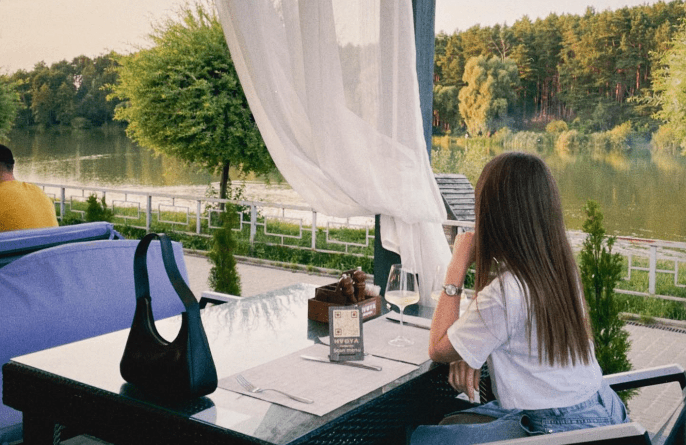 Оскільки ресторан “HVOYA” розташований прямо на березні Стрижня та навпроти урочища Ялівщина, перед ним — мальовничий пейзаж. У ньому поєднується краса річки та лісу, тому фотографії тут виходять неймовірними.