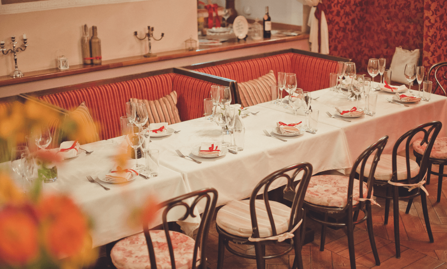 У ресторані “Княжий орден” можуть прикрасити зали квітами, кульками, тканиною та іншими речима, відповідно до запиту клієнтів.